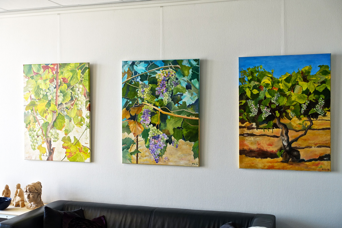 Expositie van schilderijen en beeldhouwwerk in de hal van ons appartementencomplex De Horst.