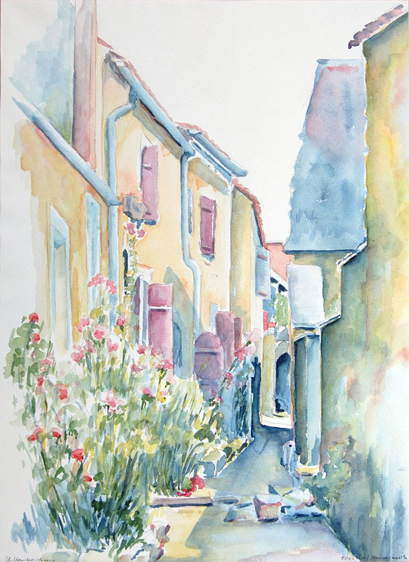 'Straatje met bloemen in St.Leon-sur-Vezere', 1990