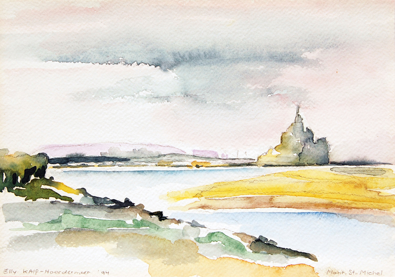 Ik vind de aquarel van de mont Michel een mooie aquarel , .